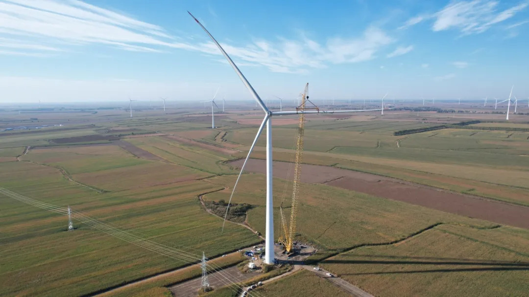 9月28日,黑龙江国华五矿萝北一期20万千瓦风储项目完成全部风机吊装。
